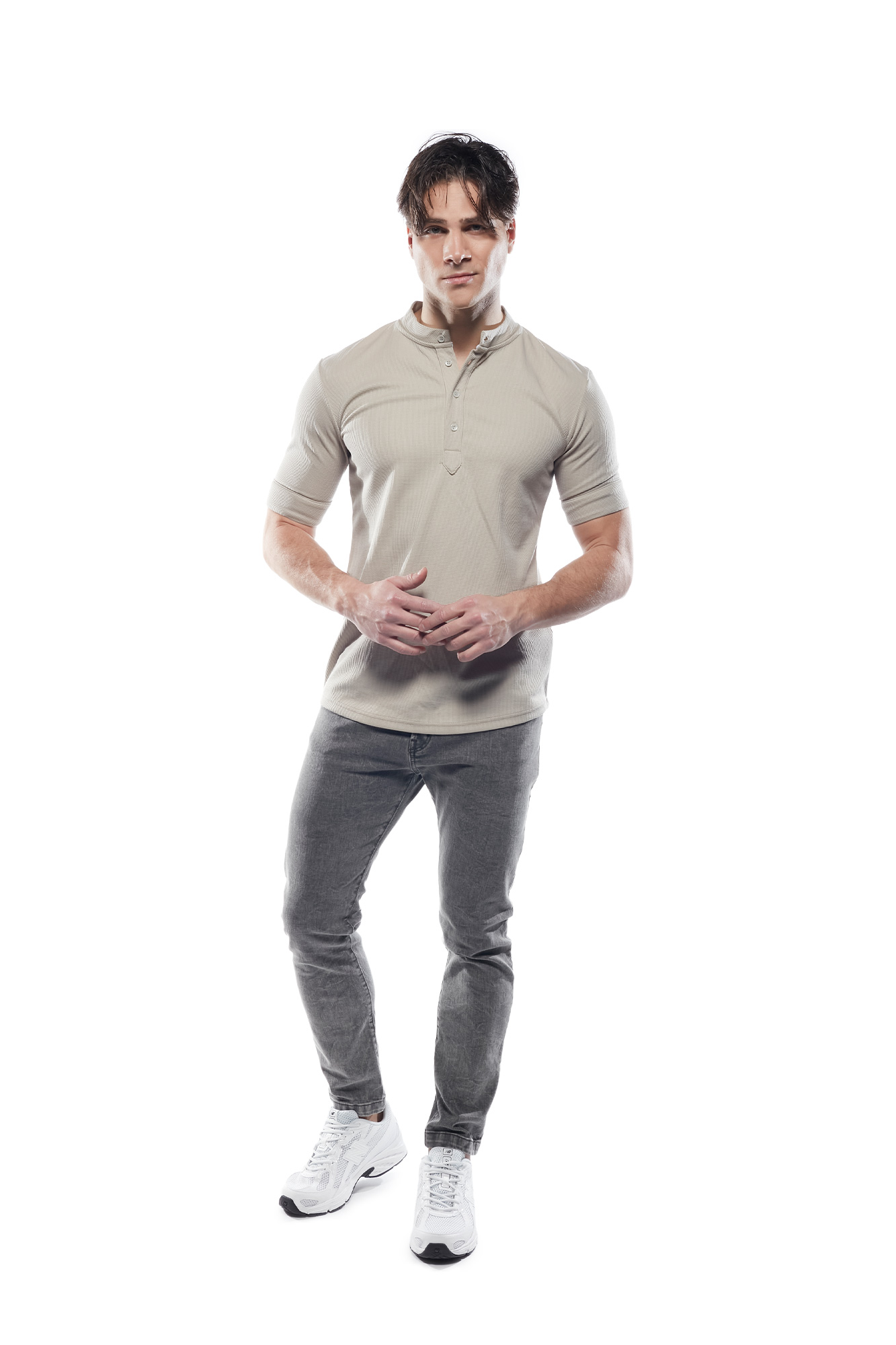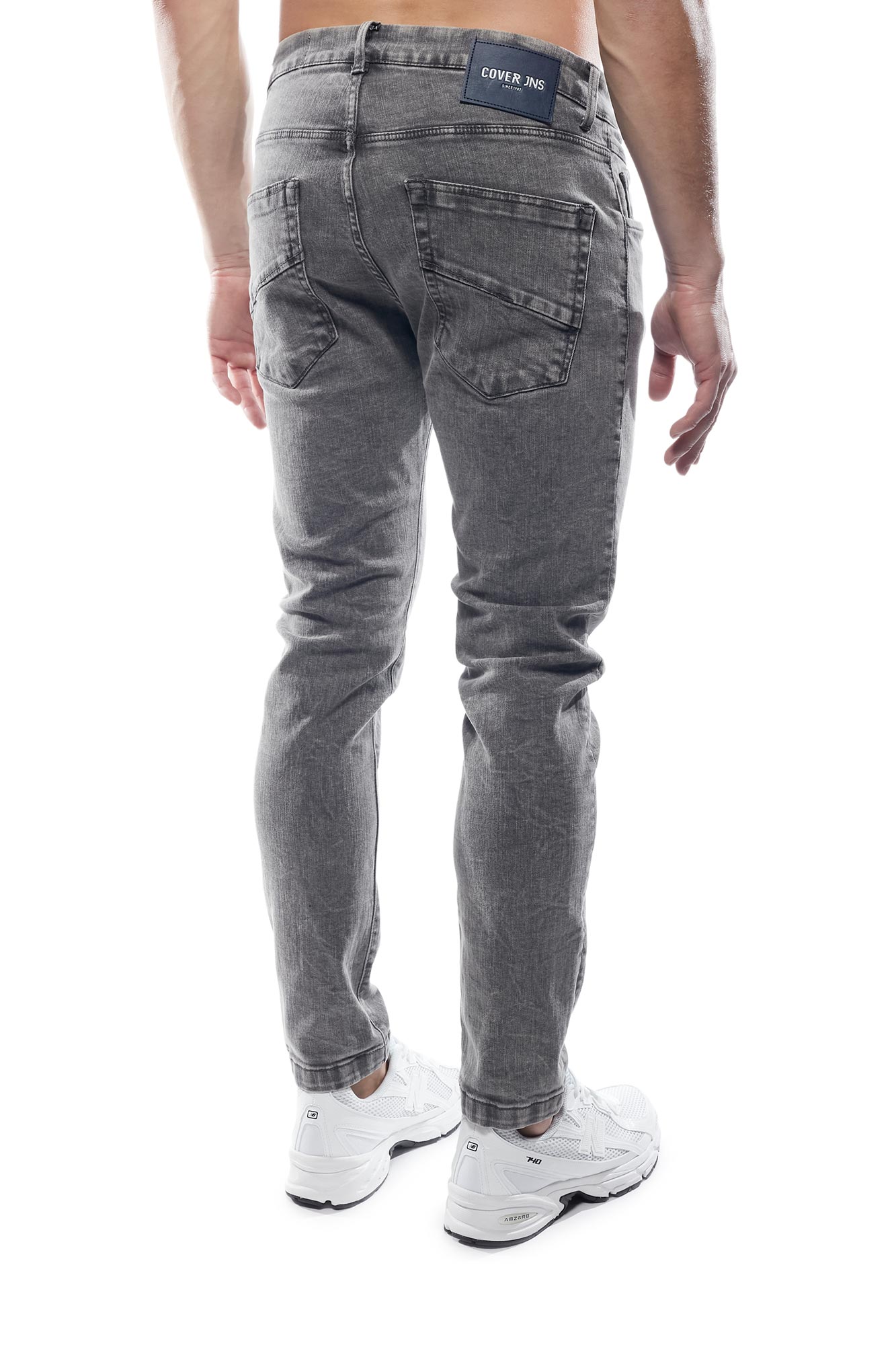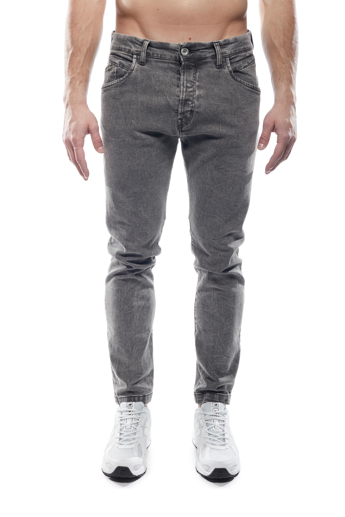 Λεπτομέρειες: Denim παντελόνι σε γκρι απόχρωση. Η εφαρμογή αγκαλιάζει το σώμα χωρίς να περιορίζει την κίνηση, χάρη στην ποιότητα του υφάσματος.